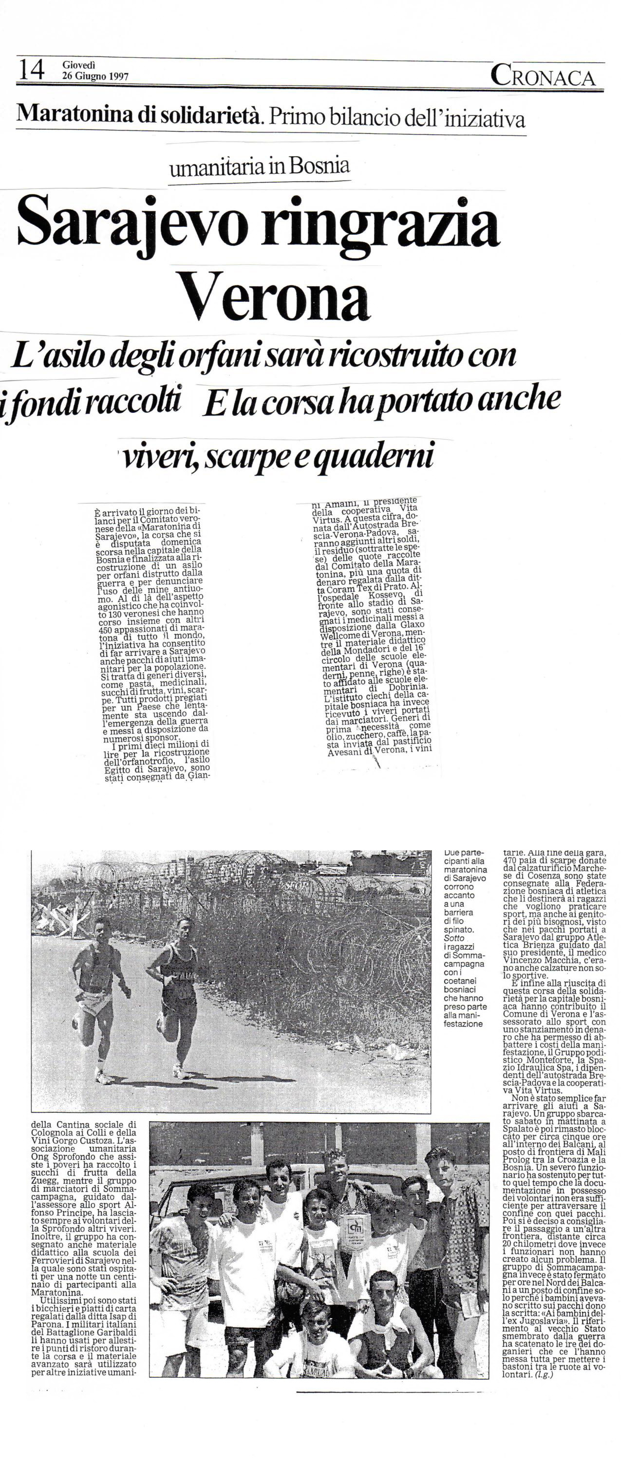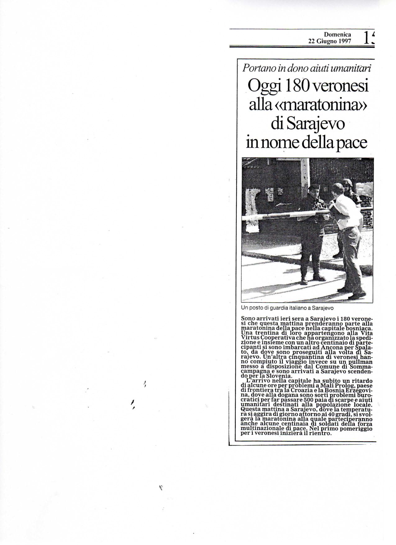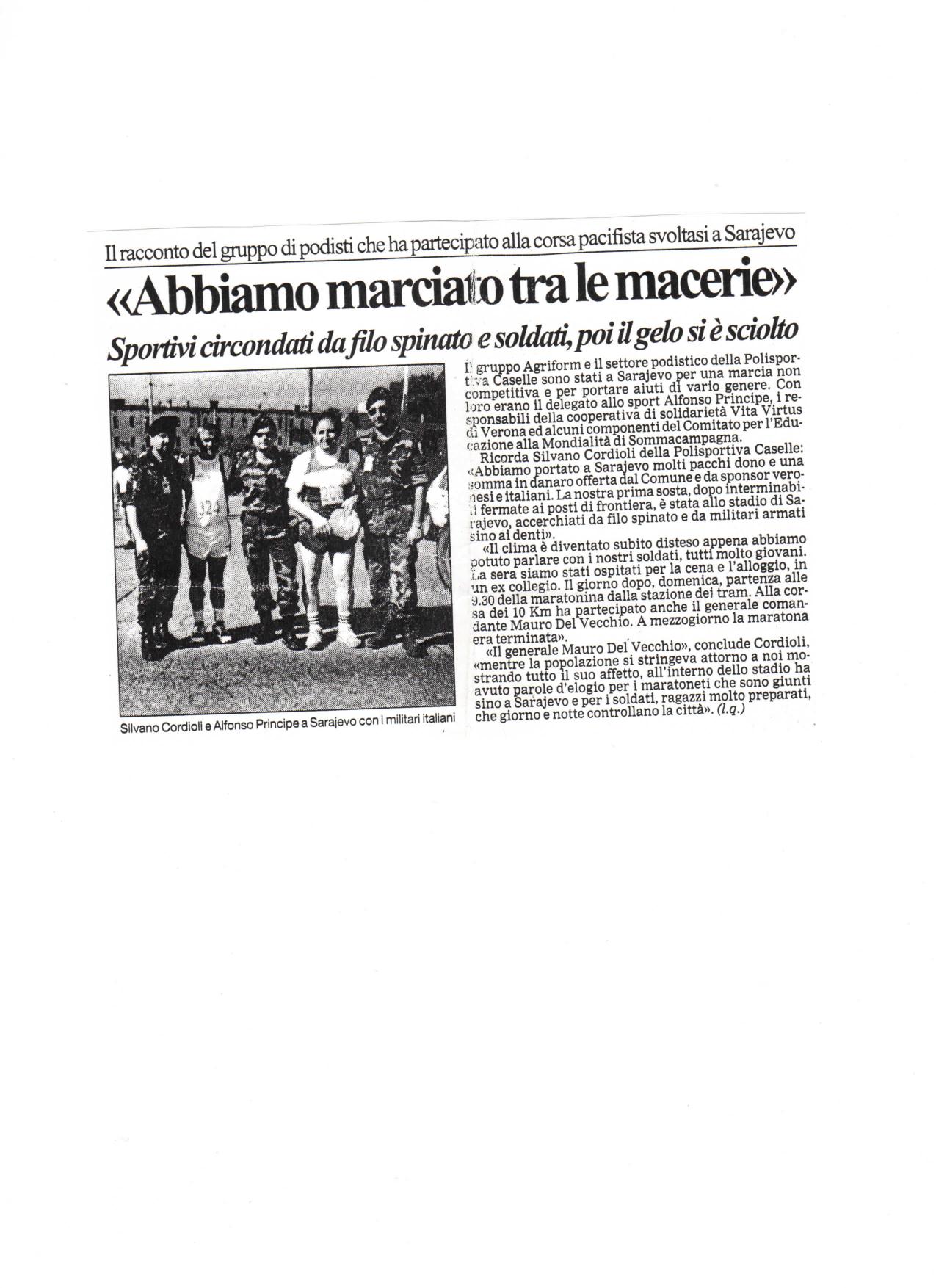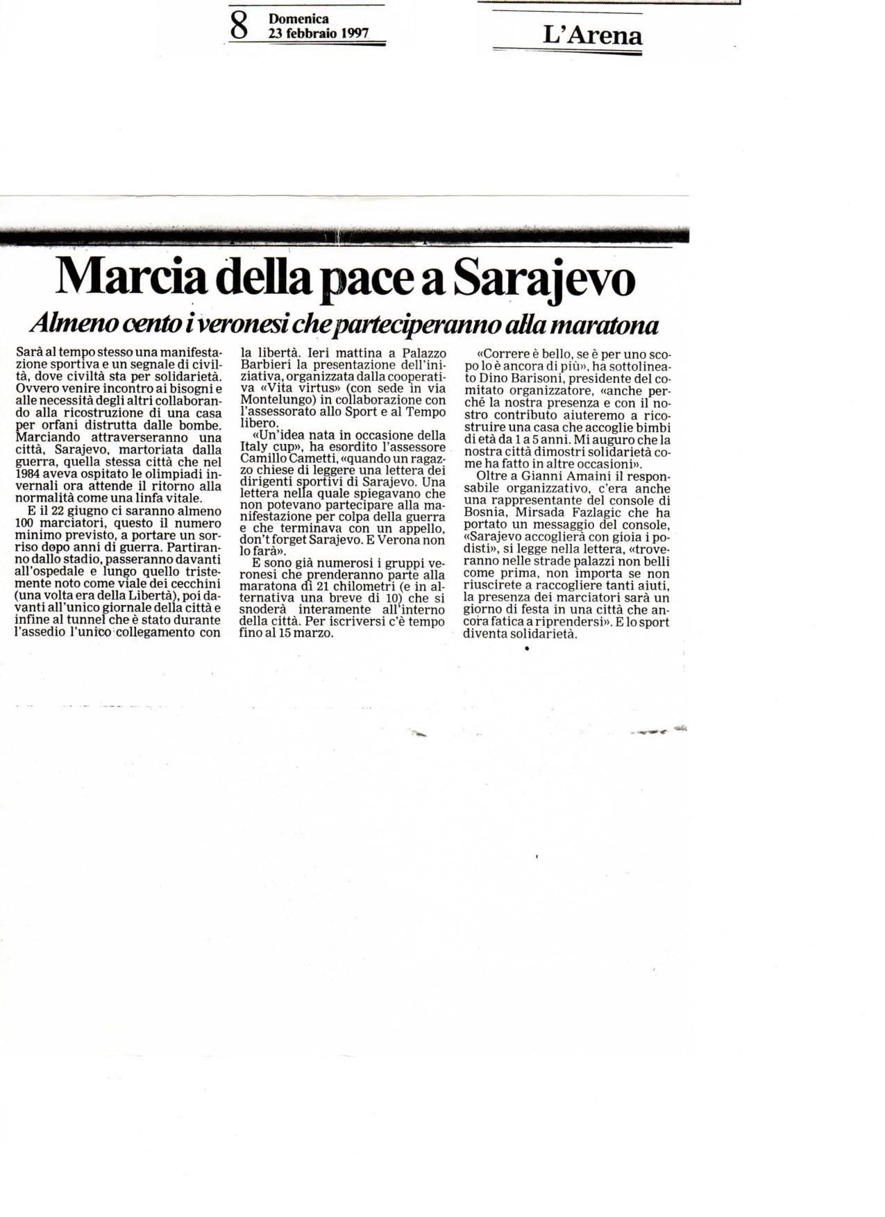 Oggi 180 veronesi alla "maratonina" di Sarajevo in nome della pace